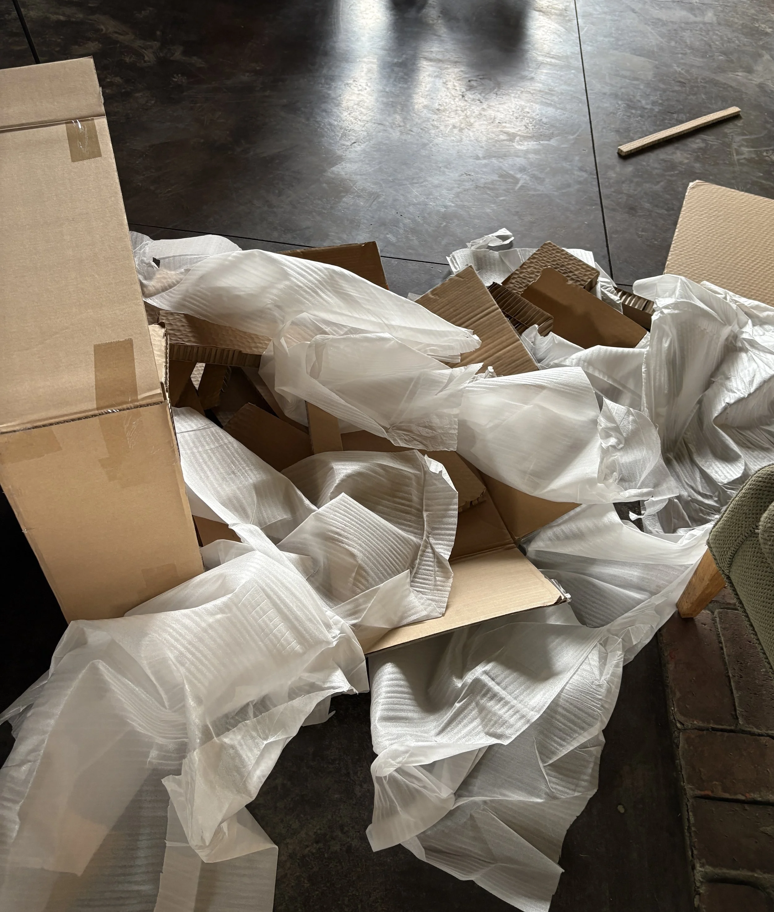 I unloaded what turned out to be a very carefully packed box filled with what appeared to my eye to just be a bunch of various and sundry things. It was hard to imagine that amidst all the padding, cardboard, and stretchy-foamy wrap, the pieces contained in that box would eventually come together to resemble the bedside table I’d ordered.