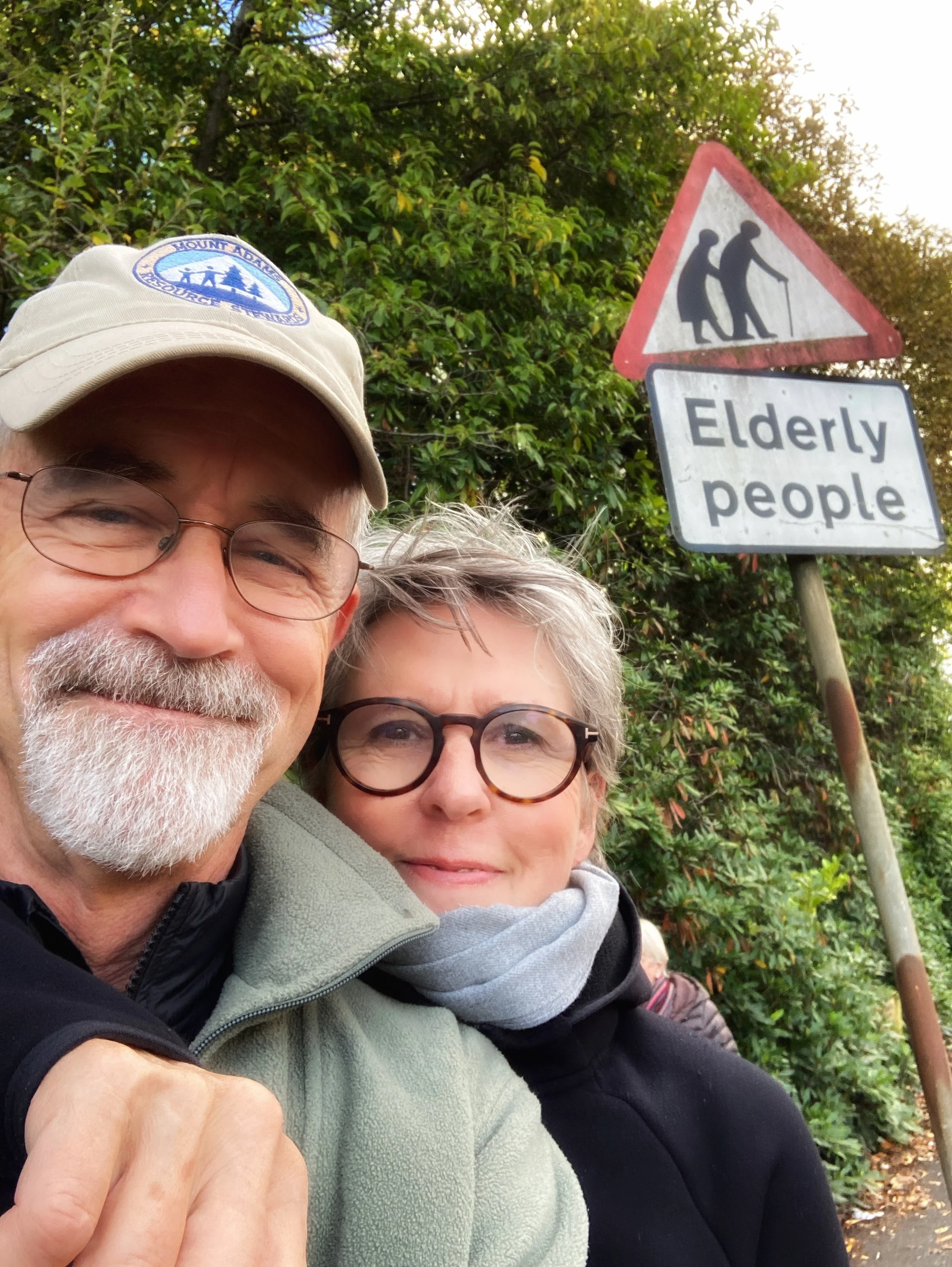 This is us, getting ready to set out on a 100 mile, ten-day trek in Scotland in late 2023. Full disclosure. I might have used a filter to “soften” some of our wrinkles. Like I said. It’s tricky.